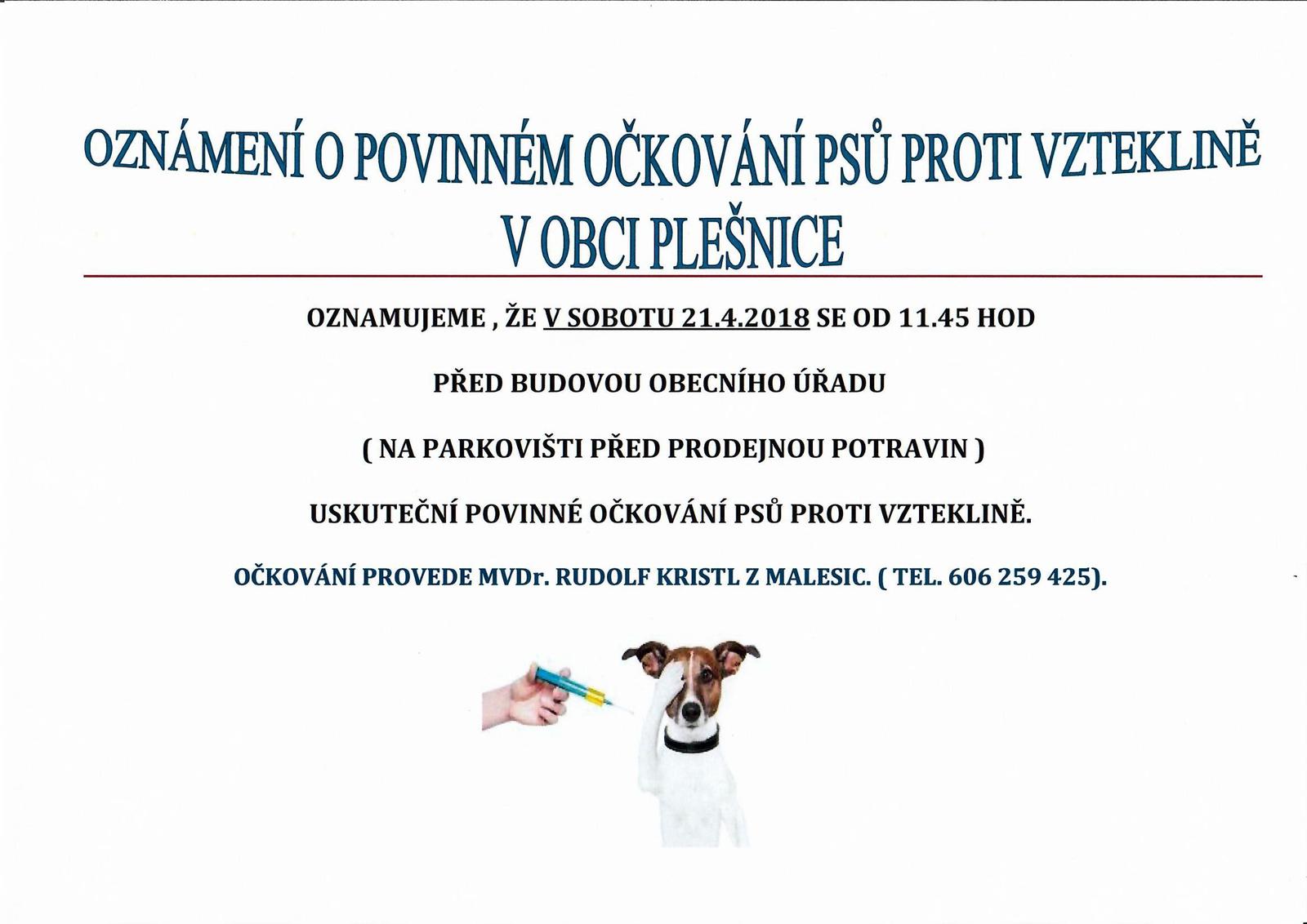 Úvod > Aktuality > Oznámení o očkování psů 21.4.2018