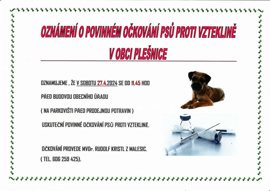 Úvod > Aktuality > Oznámení o očkování psů proti vzteklině 27.4.2024