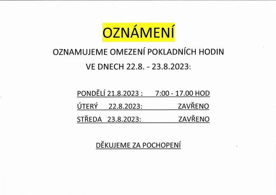 Úvod > Aktuality > Oznámení o uzavření OÚ Plešnice z důvodu dovolené 22.8.-23.8.2023