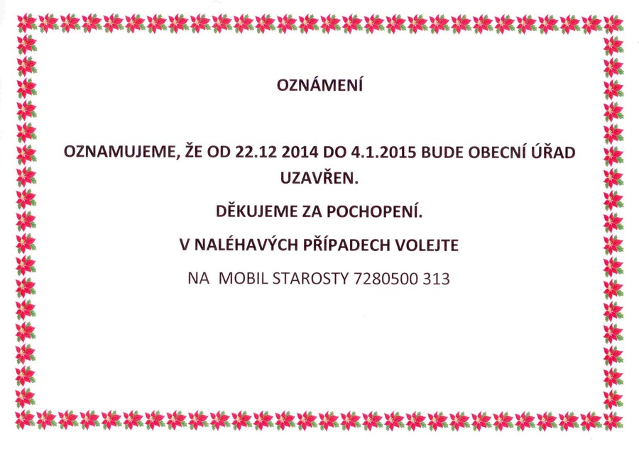 Úvod > Aktuality > Oznámení obecního úřadu