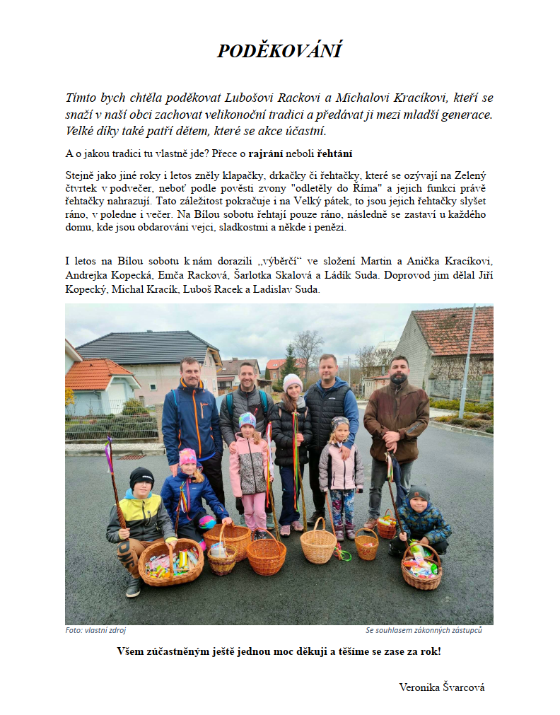 Úvod > Aktuality > Poděkování za snahu zachovat velikonoční tradici