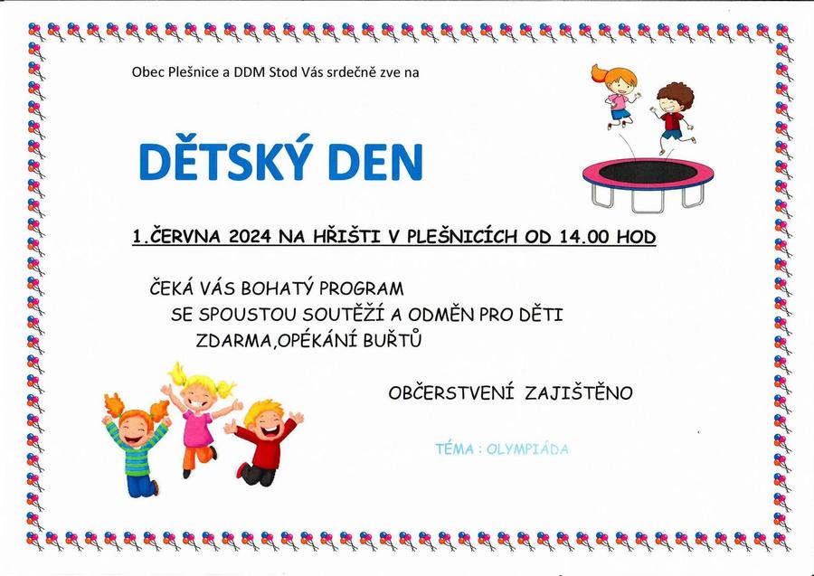 Úvod > Aktuality > Pozvánka na dětský den v sobotu 1.června 2024
