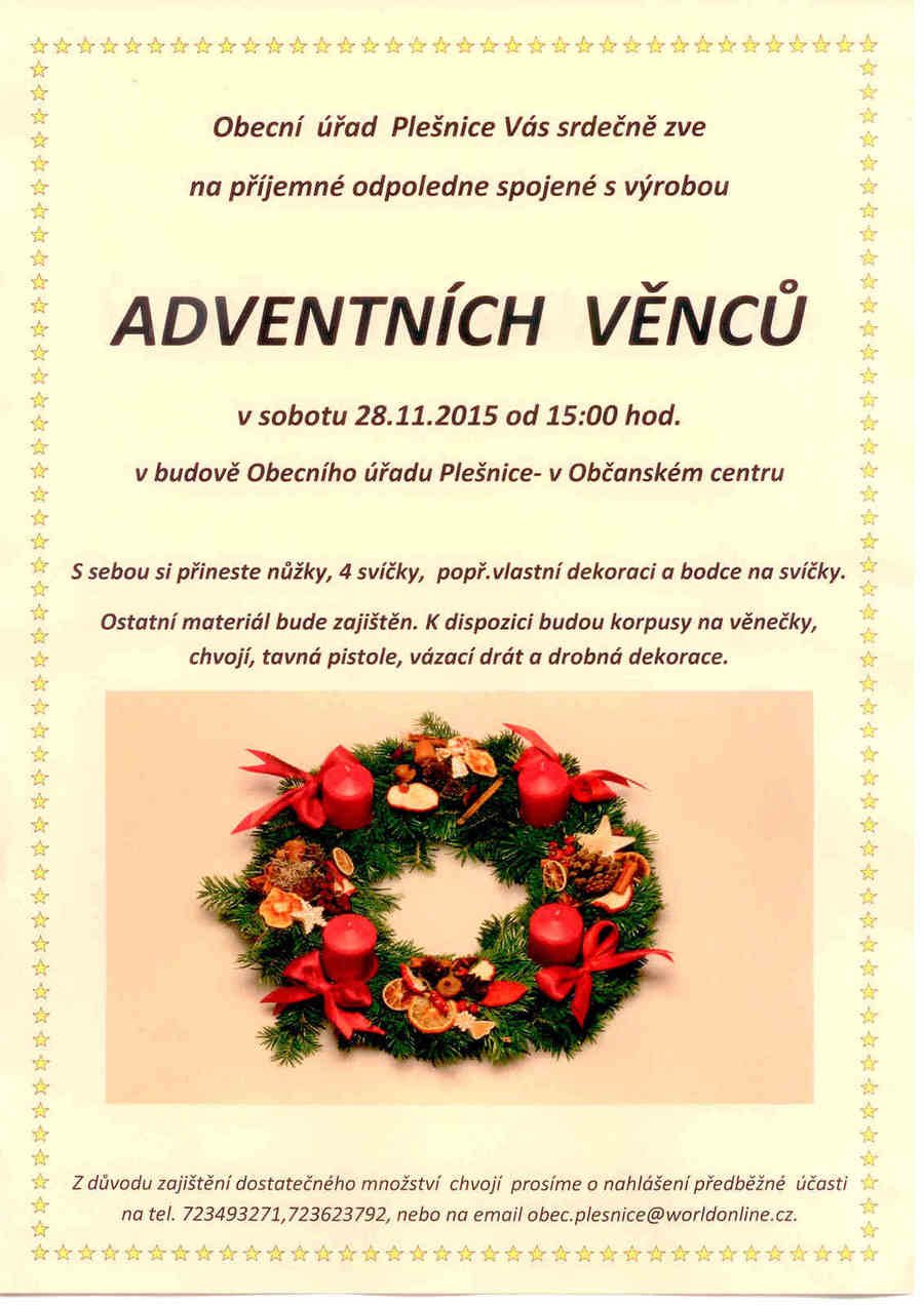 Úvod > Aktuality > Pozvánka na odpoledne spojené s výrobou adventních věnců 28.11.2015 od 15.00 hod