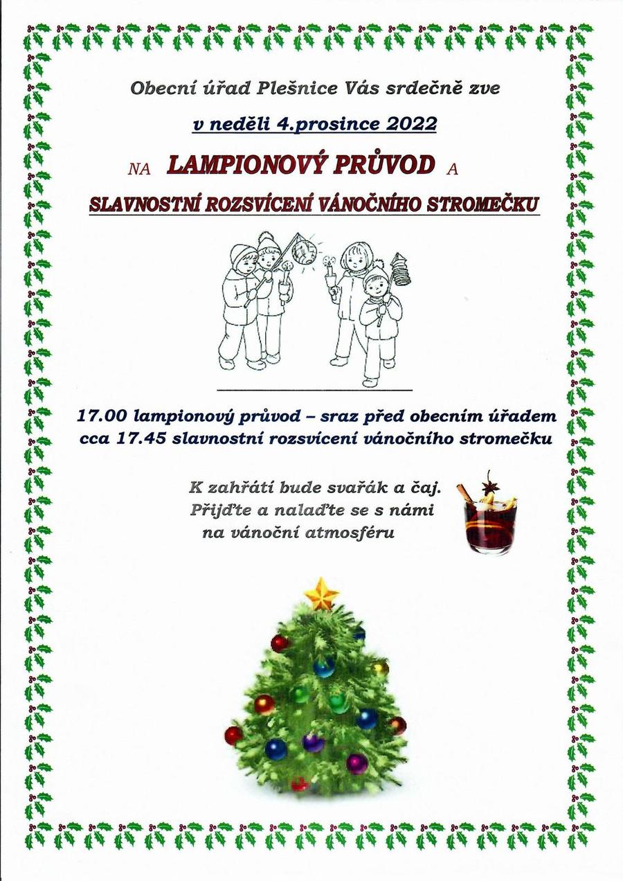 Pozvánka na slavnostní rozsvícení vánočního stromku a lampionový průvod 4.11.2022
