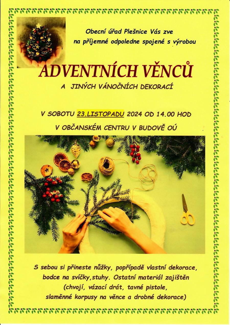 Úvod > Aktuality > Pozvánka na výrobu vánočních věnců a jiných dekorací v sobotu 23.11.2024