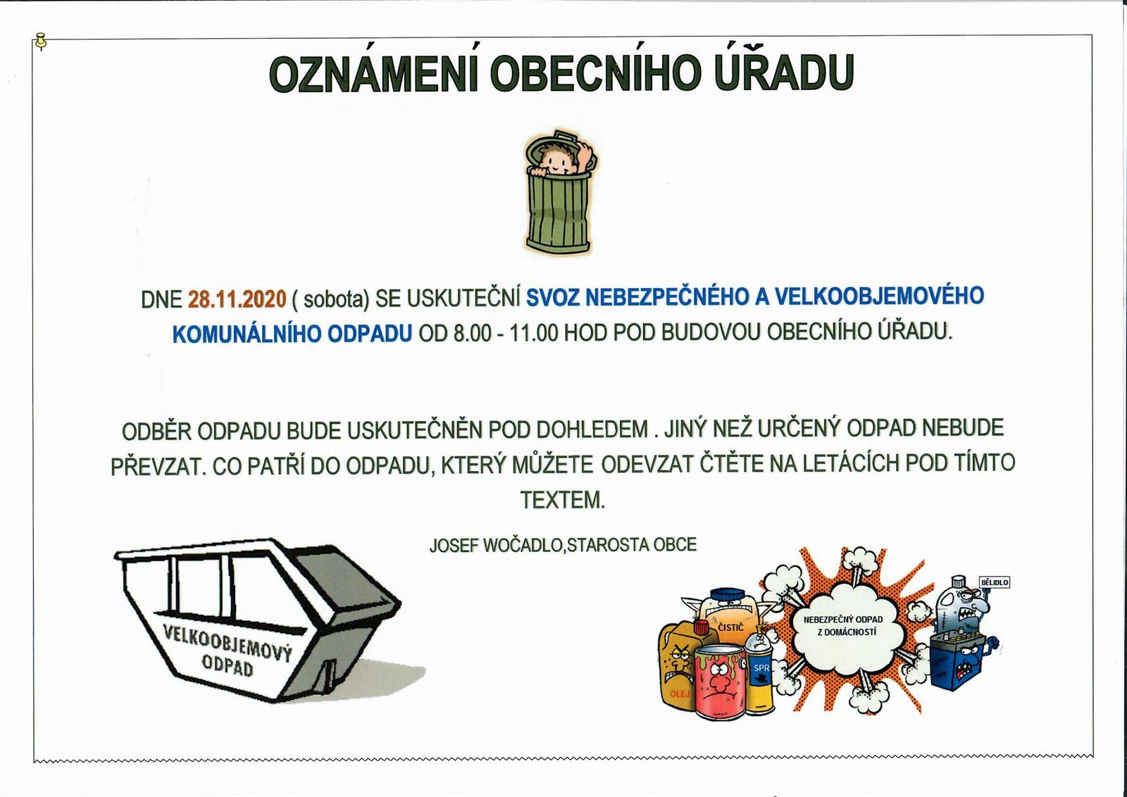 Svoz nebezpečného a objemného odpadu v obce Plešnice 28.11.2020
