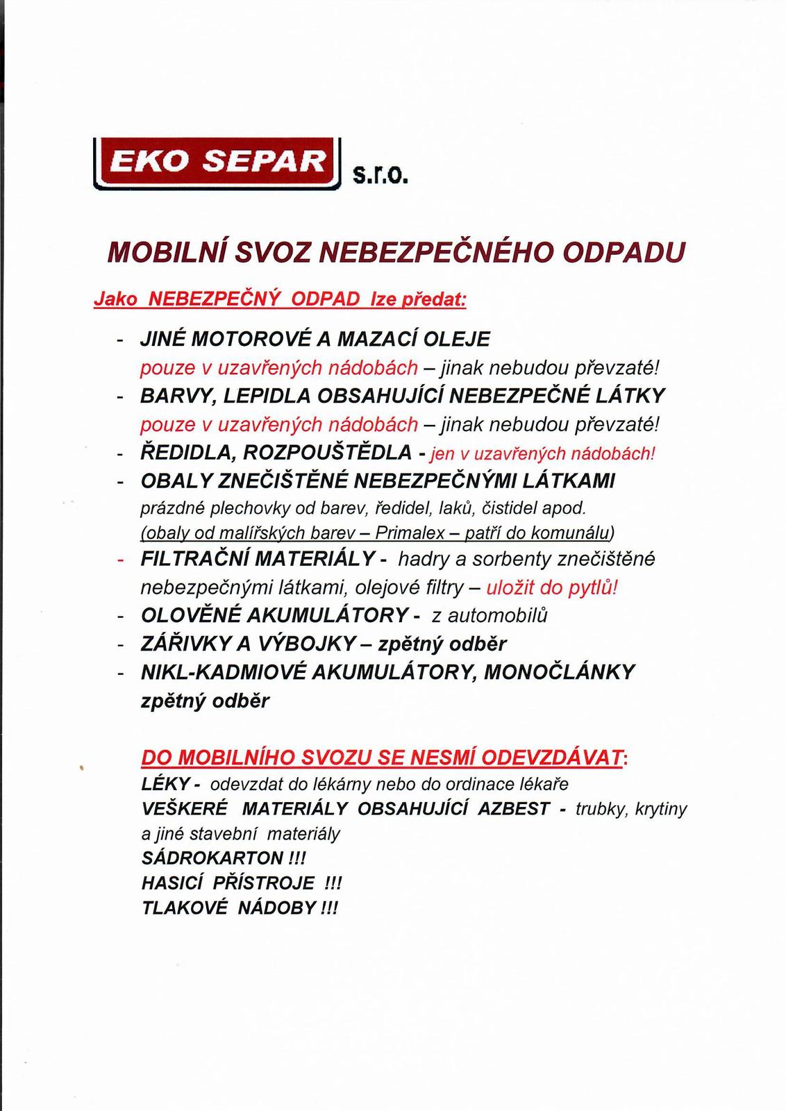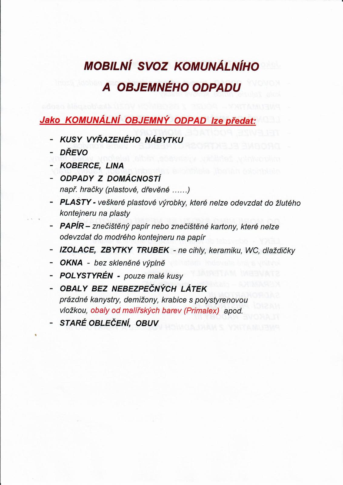Úvod > Aktuality > Svoz nebezpečného a objemného odpadu v obce Plešnice 28.11.2020