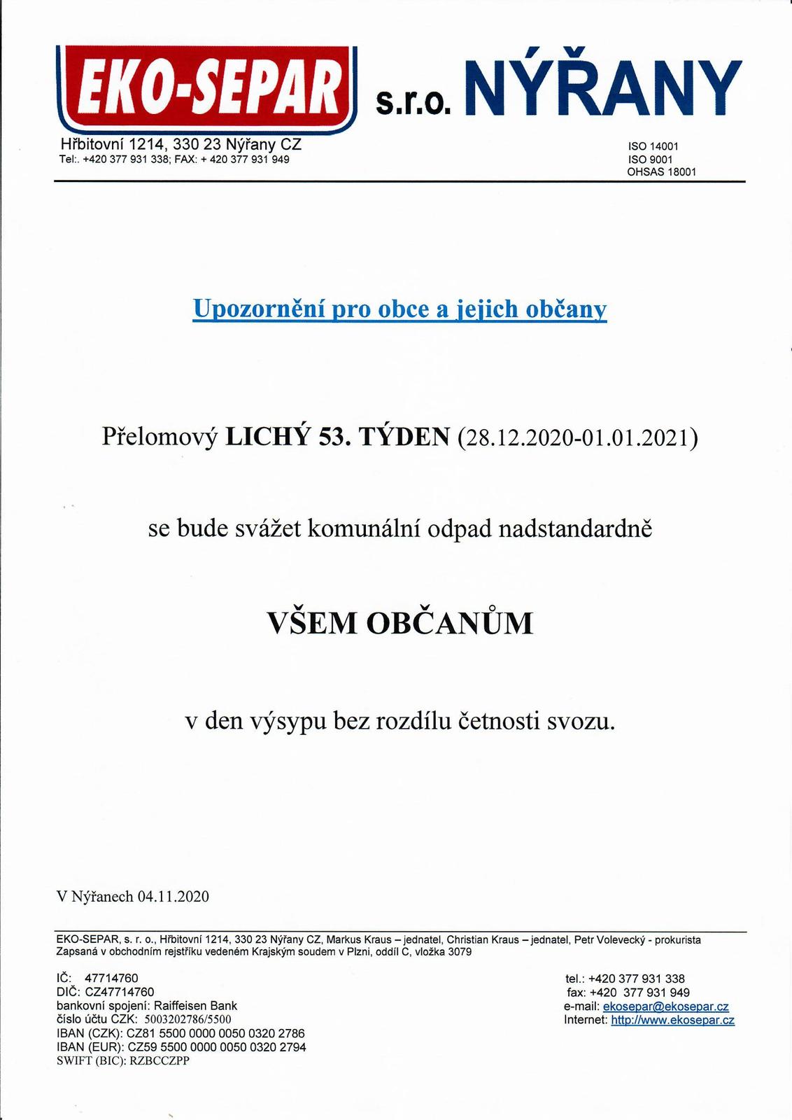 Termíny svozů odpadu , svoz odpadu v lichém 53. týdnu