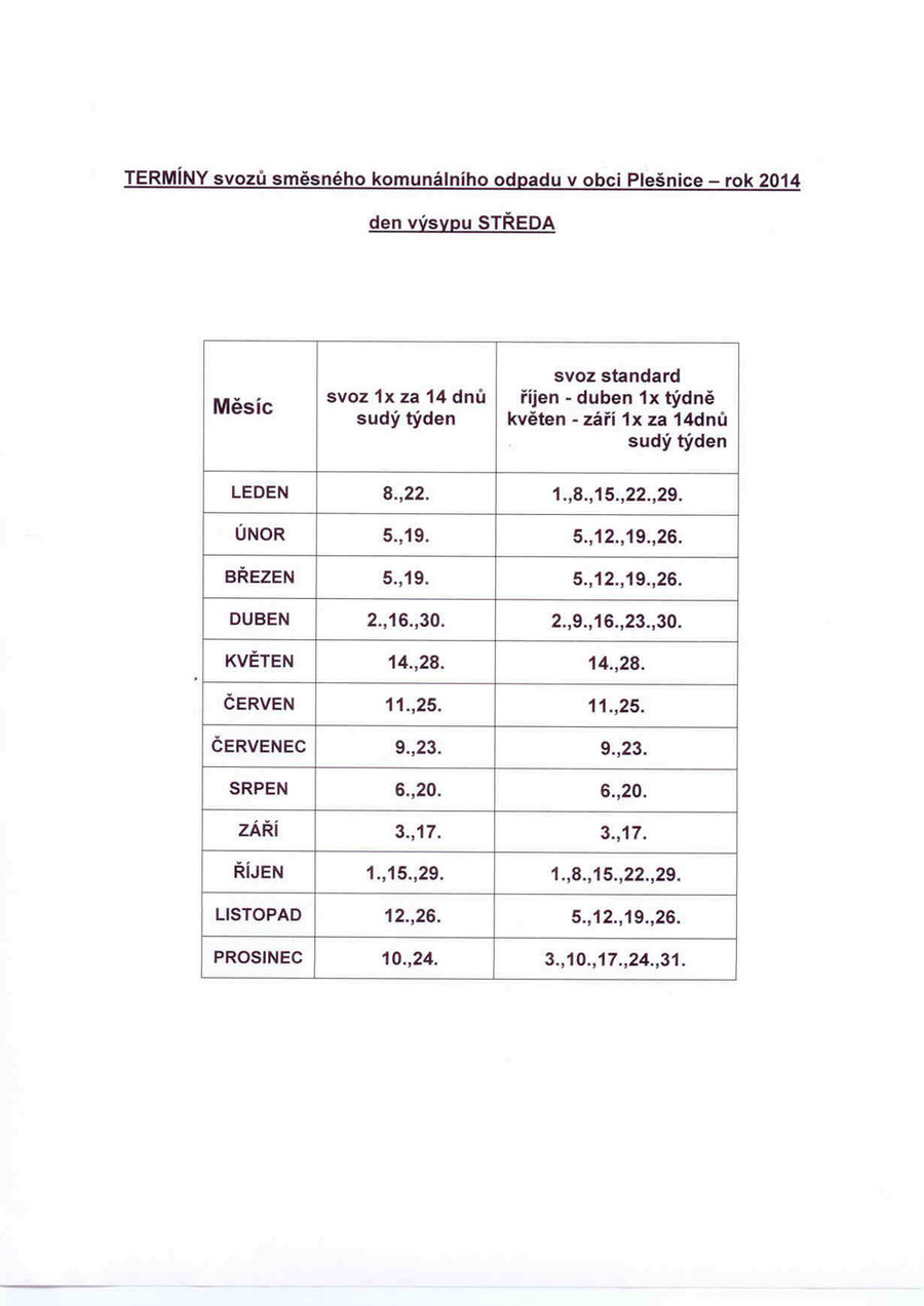 Úvod > Aktuality > Termíny svozů odpadů v roce 2014