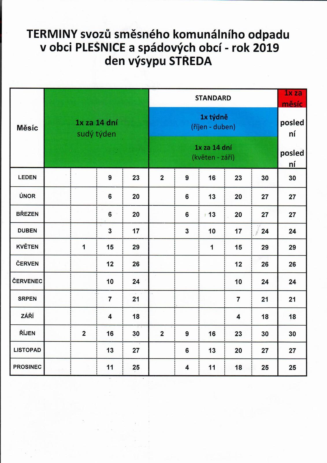 Úvod > Aktuality > TERMÍNY SVOZŮ SMĚSNÉHO KOMUNÁLNÍHO ODPADU V ROCE 2019