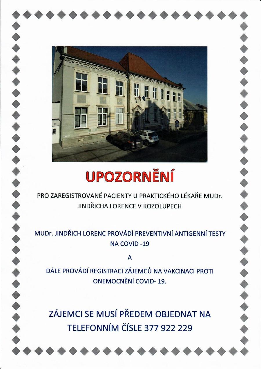 Úvod > Aktuality > Upozornění na možnost registrace na očkování a antigenní testy na covid- MUDr. J.Lorenc