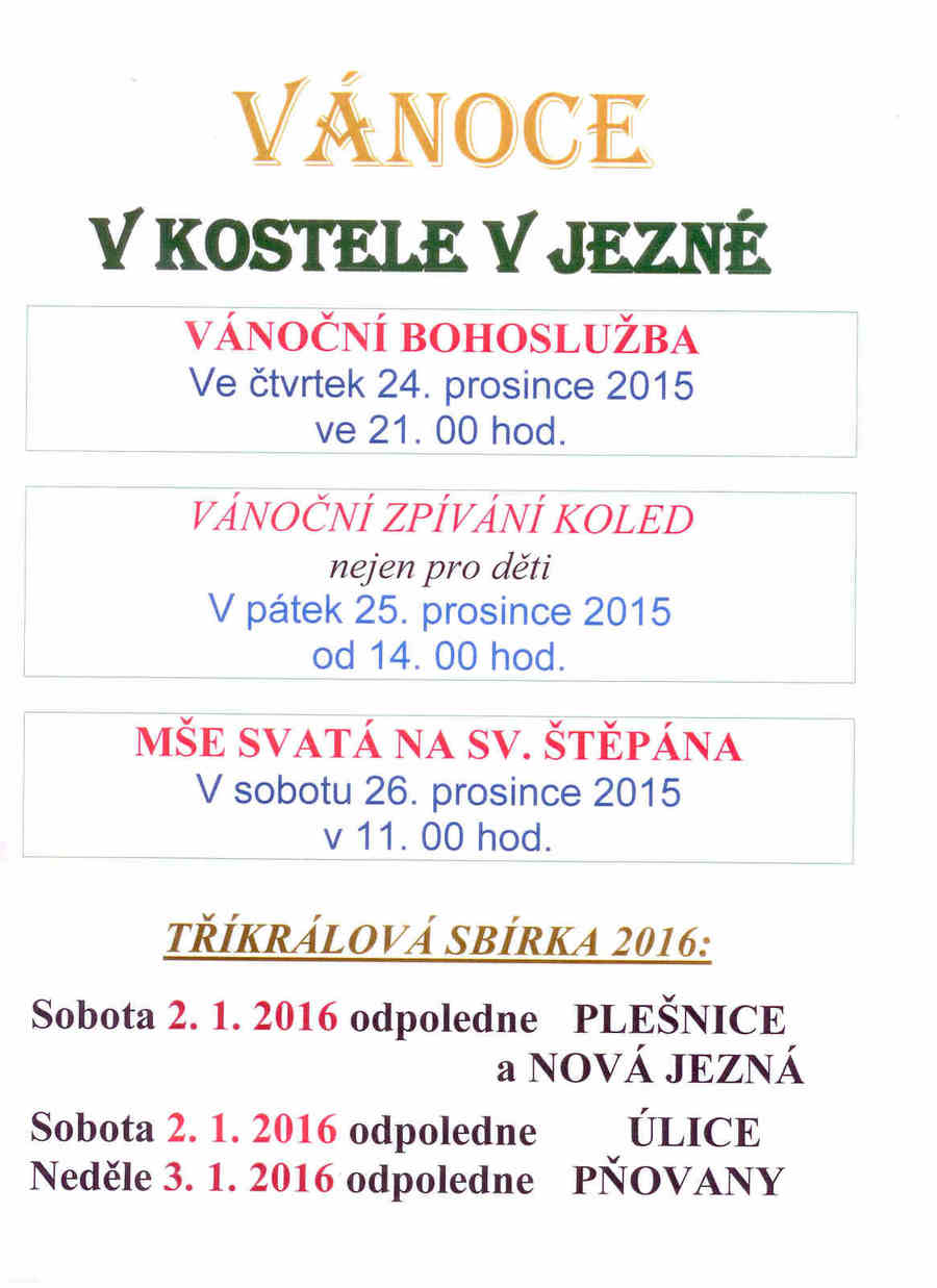 Úvod > Aktuality > VÁNOCE 2015,bohoslužba, tříkrálová sbírka