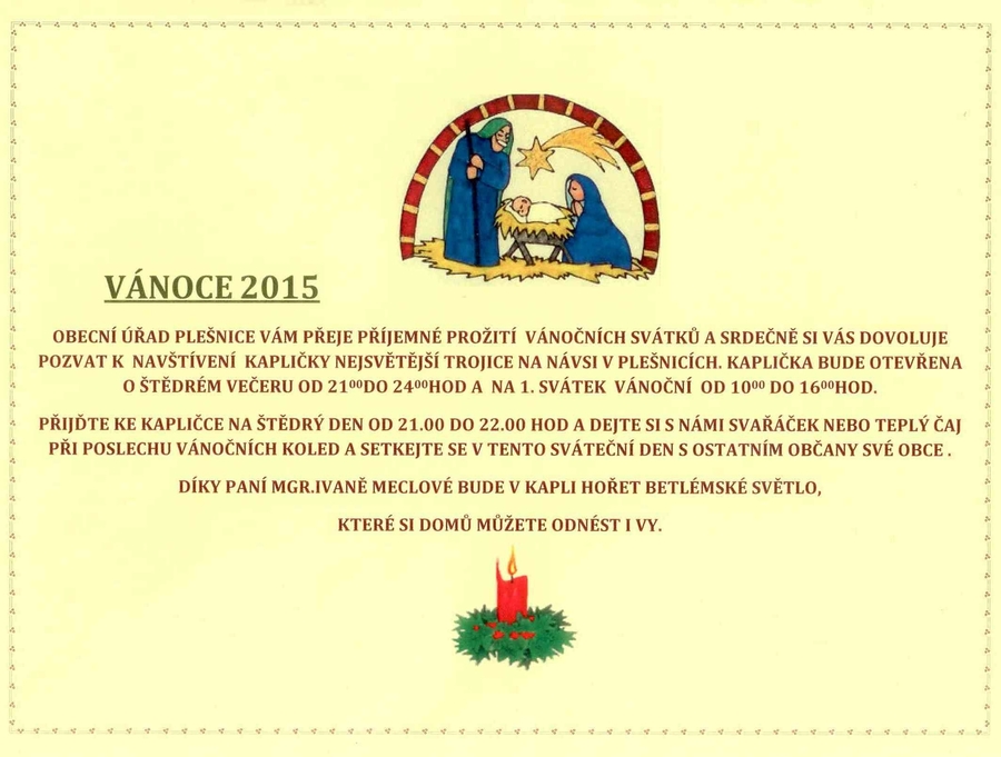 Úvod > Aktuality > Vánoce 2015 - přání , setkání u kapličky