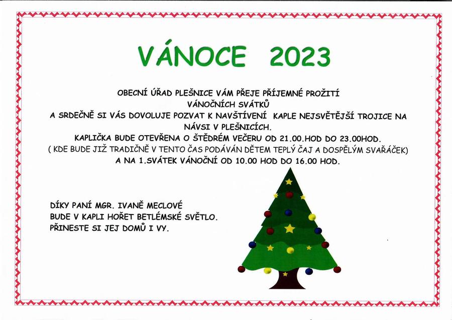 Úvod > Aktuality > Vánoce 2023 - přání a pozvání ke kapličce 24.12.2023
