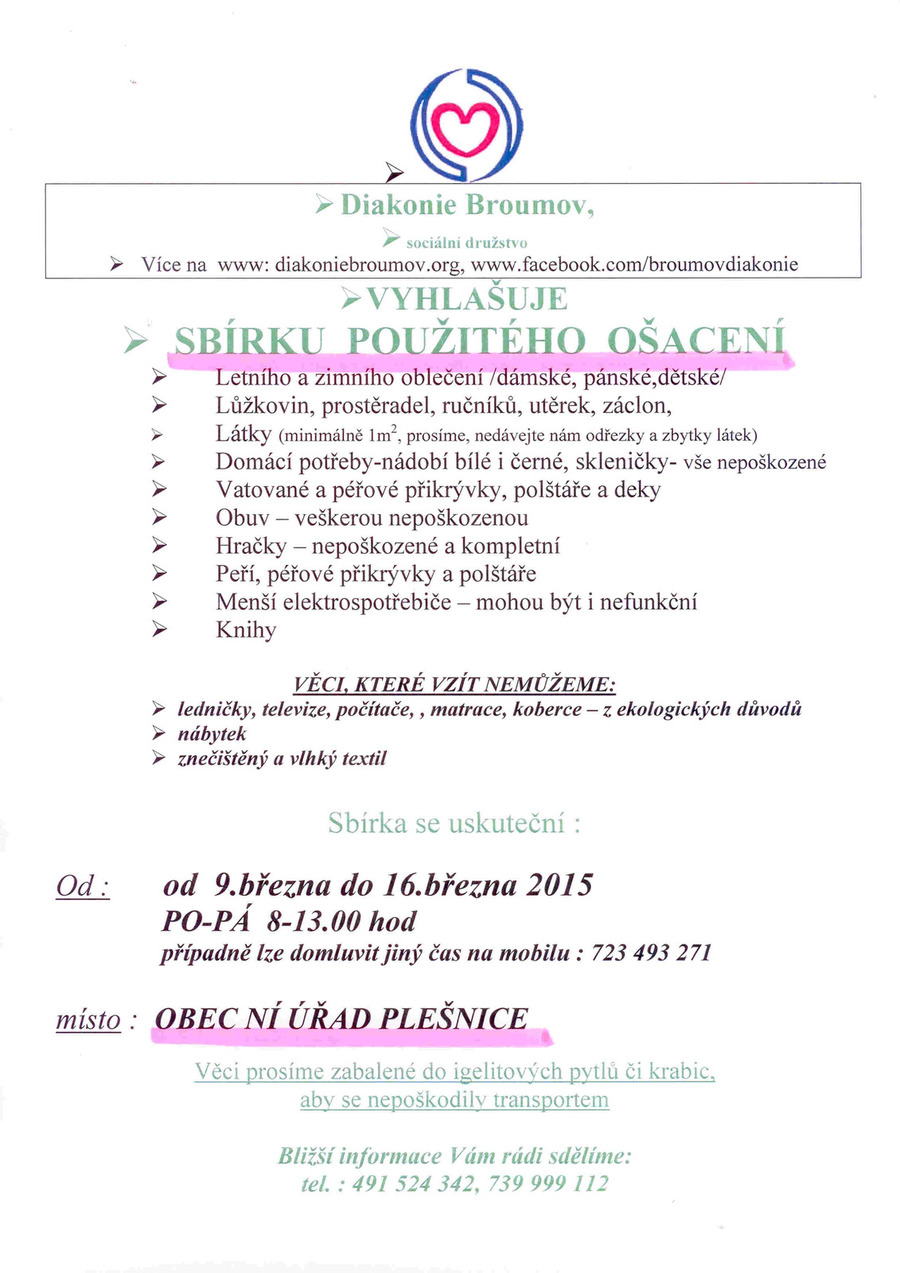 Úvod > Aktuality > Vyhlášení sbírky použitého textilu