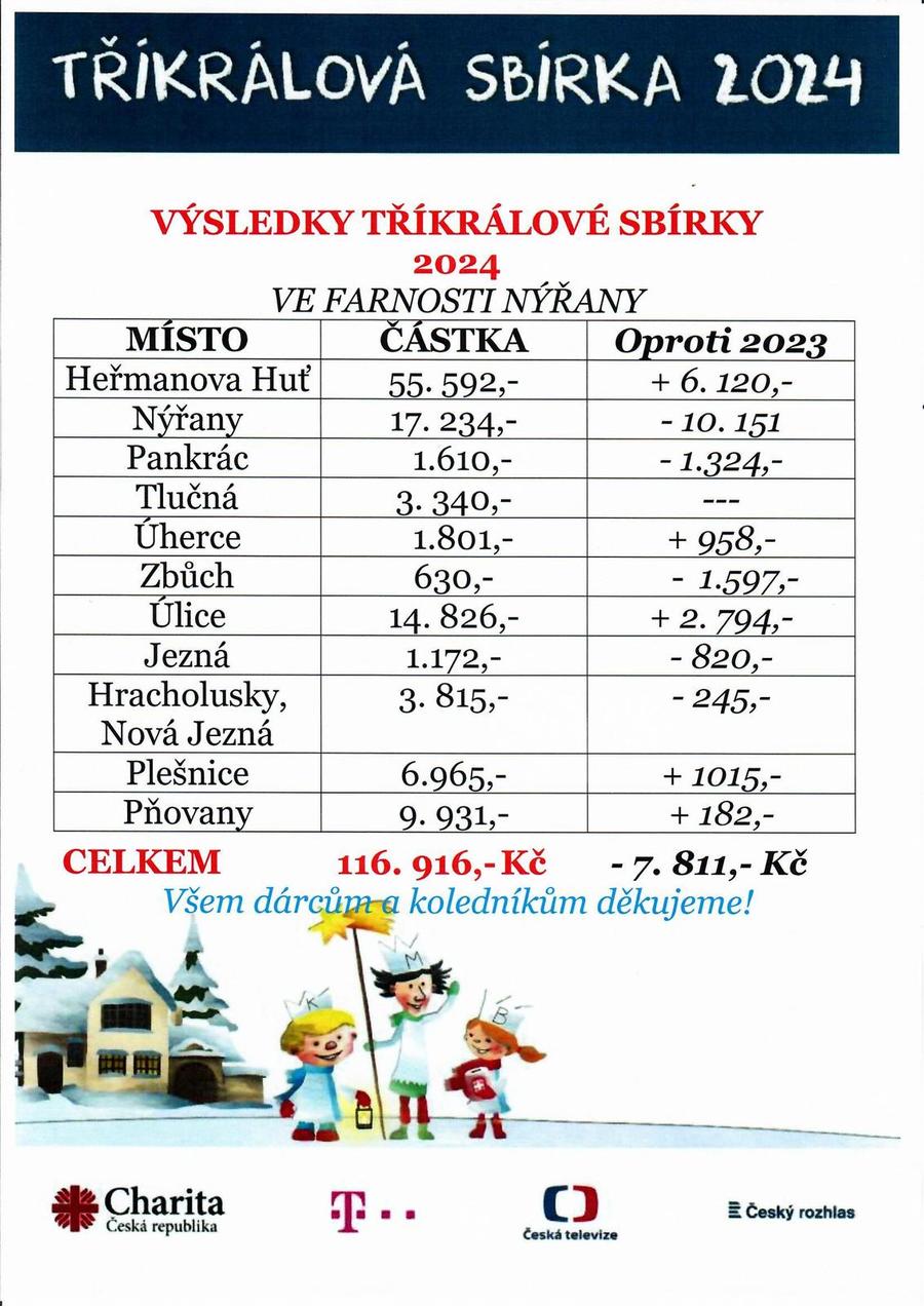 Úvod > Aktuality > Výsledky Tříkrálové sbírky ve farnosti Nýřany