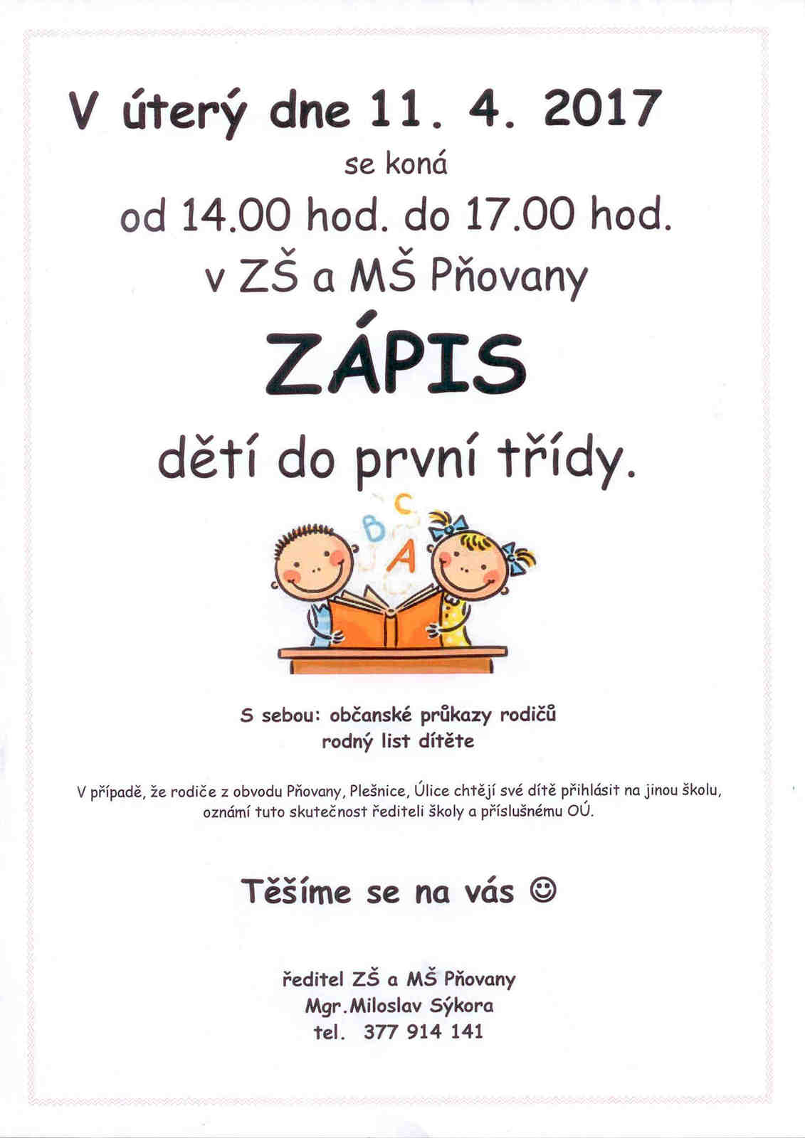 Úvod > Aktuality > Zápis dětí do první třídy v ZŠ a MŠ Pňovany