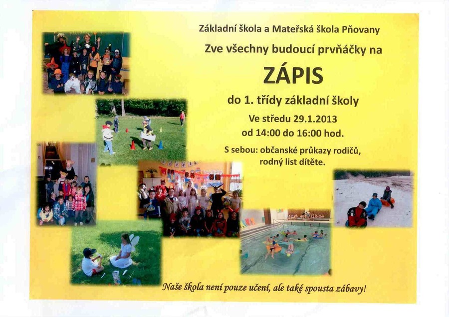 Zápis do 1.třídy základní školy - ZŠ a MŠ Pňovany